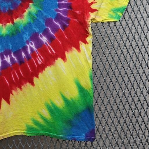 素材・製造: コットン100%で肌触りも良く、これからの季節に快適に着用いただけます。タグには「Hand Dyed in Ohio, USA」と記載されており、アメリカ製 Dyenomite-Apparel による手染めによるこだわりが感じられます。一つ一つ異なるタイダイ柄が、あなただけの特別な一枚を演出します。