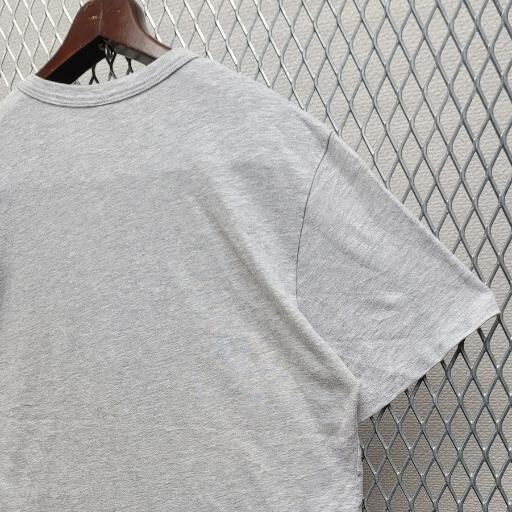 最大の特徴は、ポリエステル・コットン・レーヨンを混紡した「トライブレンド生地」です。驚くほど柔らかく、とろみのある極上の肌触りで、一度着るとやみつきになる着心地です。 古着ならではのくたっとした風合いも出ており、アメカジやスポーツミックスのコーディネートにぴったりです。